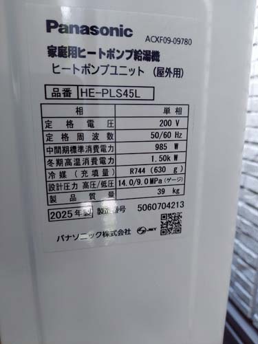 白河市本町 パナソニック家庭用ヒートポンプ給湯機 ヒートポンプユニットHE-PLS45L エコキュート交換工事