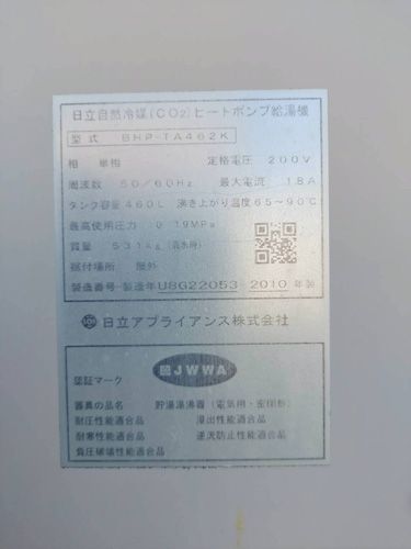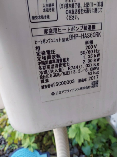 白河市郭内 日立家庭用ヒートポンプ給湯機ヒートポンプユニットBHP-HAS60RK、自然冷媒CO2ヒートポンプ給湯機BHP-TA462K→コロナ自然冷媒CO2家庭用ヒートポンプ給湯機ヒートポンプユニットCHP-DZ451K エコキュート交換工事