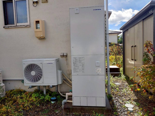 白河市郭内 コロナ自然冷媒CO2家庭用ヒートポンプ給湯機ヒートポンプユニットCHP-DZ451K エコキュート交換工事