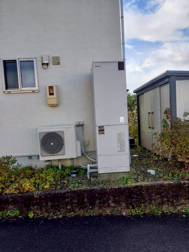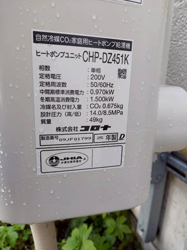 白河市郭内 コロナ自然冷媒CO2家庭用ヒートポンプ給湯機ヒートポンプユニットCHP-DZ451K エコキュート交換工事